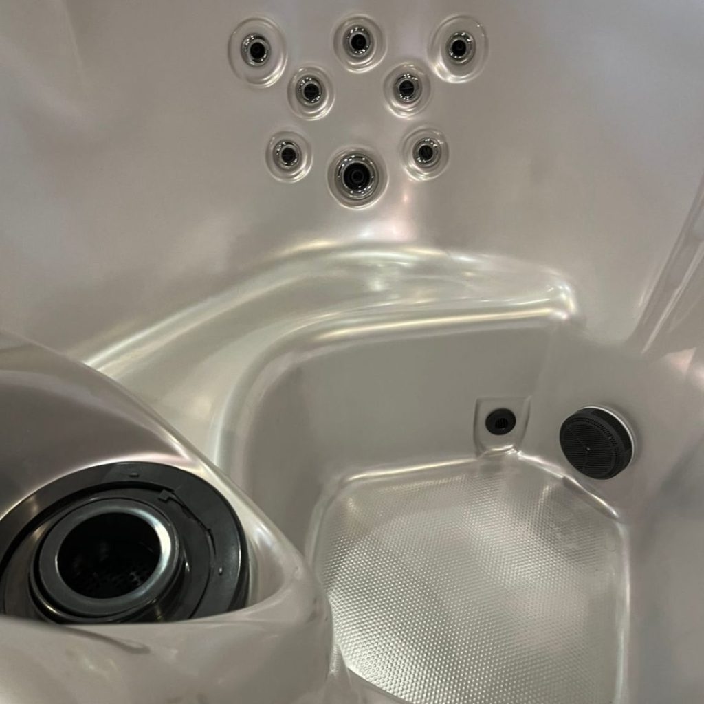 Spa de exterior con capacidad para 5 personas. Cuatro asientos y una cama. Incluye 37 jets y tapa térmica.