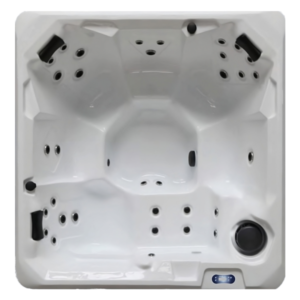 Spa de exterior con capacidad para 6 personas. Cinco asientos y una cama. Incluye 54 jets y tapa térmica.